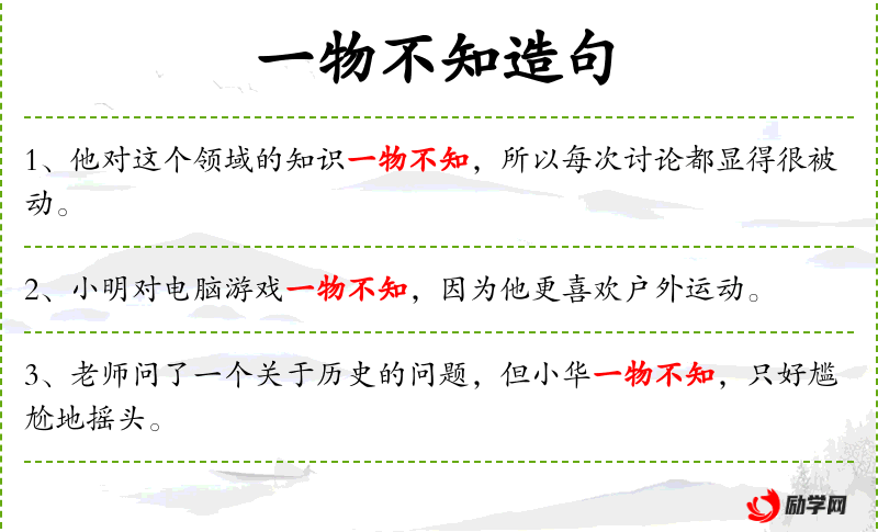 1. 【一物不知】 对某一事物有所不知。比喻知识尚有欠缺。