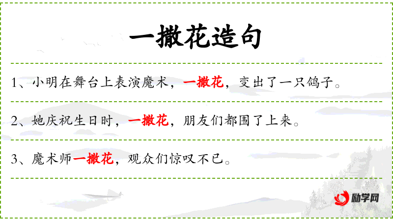 1. 【一撒花】 - 谓挥霍无度。