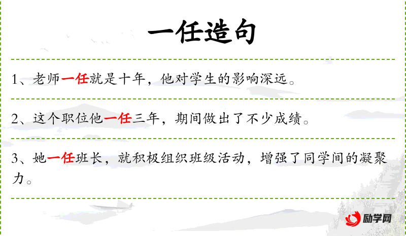 1. 【一任】 - 担任官职期满为一任; 听凭。