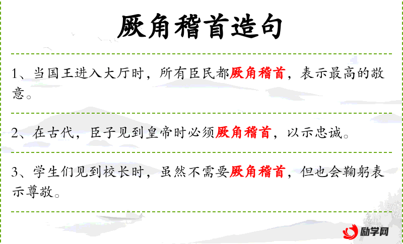 “厥角稽首”是古代**的一种礼仪,表示极度尊敬和服从。这种礼仪反映了古代社会的等级制度和礼仪规范,与现代社会的礼仪有所不同。