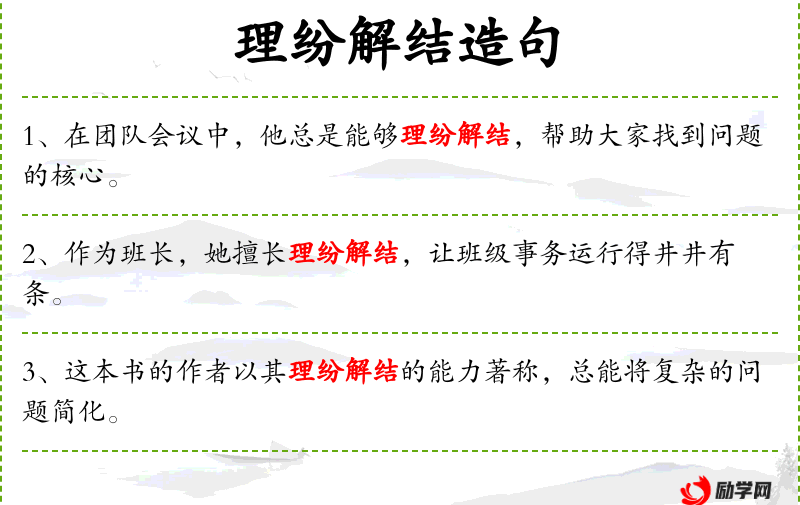 3. 【理纷解结】 - 理纷乱,除疙瘩。