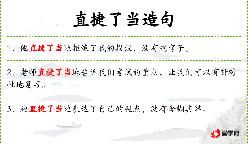 形容说话、做事不绕弯子,干脆爽快。同“直截了当”。