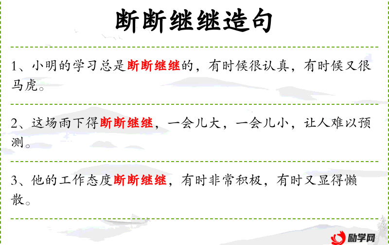 - 她的病情呈现出断断继继的特点,时而好转,时而恶化。