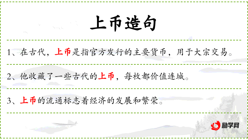 1. 【上币】 - 上等的货币。古以珠玉为上币,秦以黄金为上币。