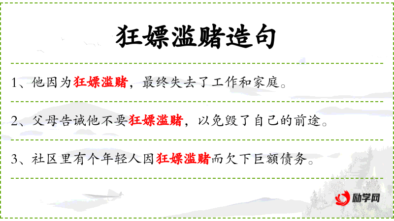 1. 【狂嫖滥赌】 - 指沉溺于嫖妓赌博。