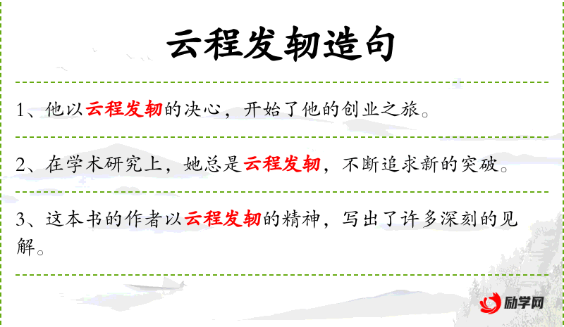 - 云程发轫:这个成语源自《左传·僖公二十三年》,原指车子启动时,车轮开始转动。在现代汉语中,常用来比喻事情的开始或起始阶段。