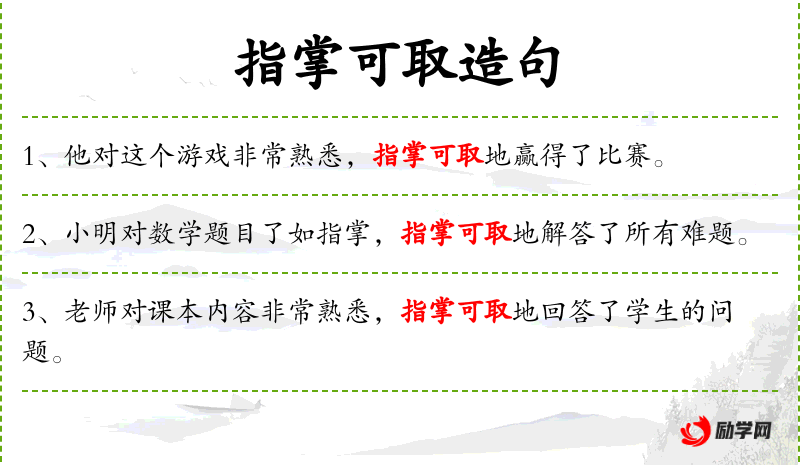 - 谓语:对课本内容非常熟悉,指掌可取地回答了学生的问题