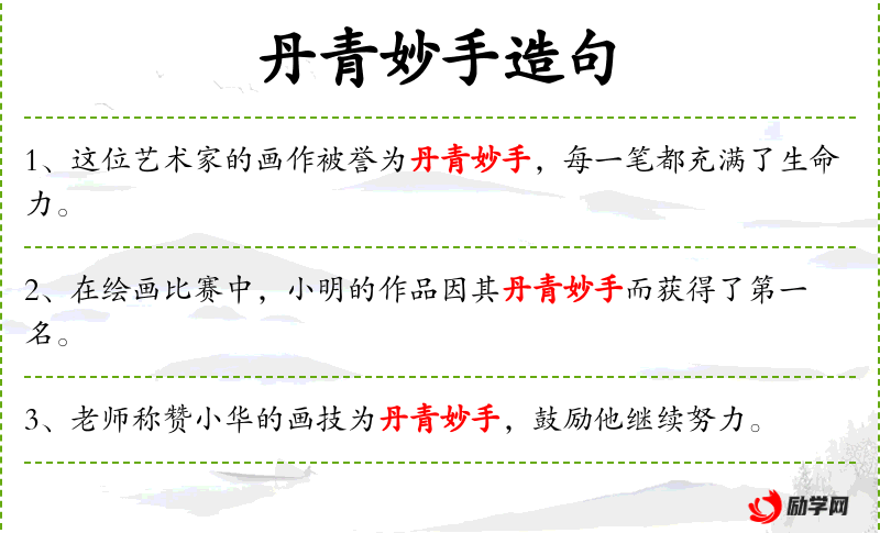 - 文化背景:“丹青妙手”是**传统文化中的一个成语,用来形容绘画技艺非常高超的人。