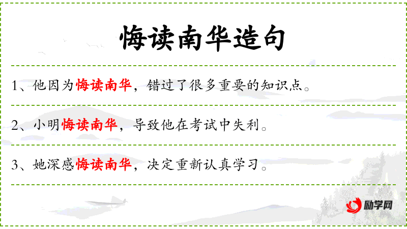 - 英文:She is determined not to regret reading the "Nan Hua" anymore and to catch up with the progress.