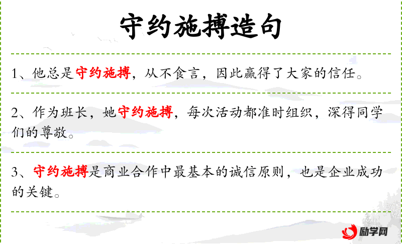 - 守约施搏:成语,意为遵守约定并全力以赴。