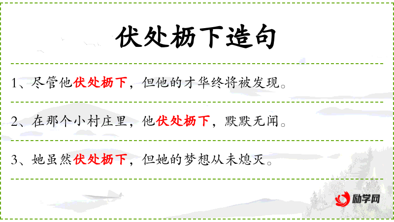 句子:“这位作家在成名前伏处枥下,默默写作。”