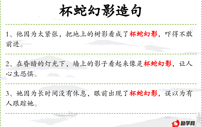 4. 【杯蛇幻影】 - 比喻疑神疑鬼,自相惊扰。同“杯弓蛇影”。
