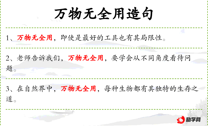 1. 【万物无全用】 - 世间万物都各有其用,不能求其全能。