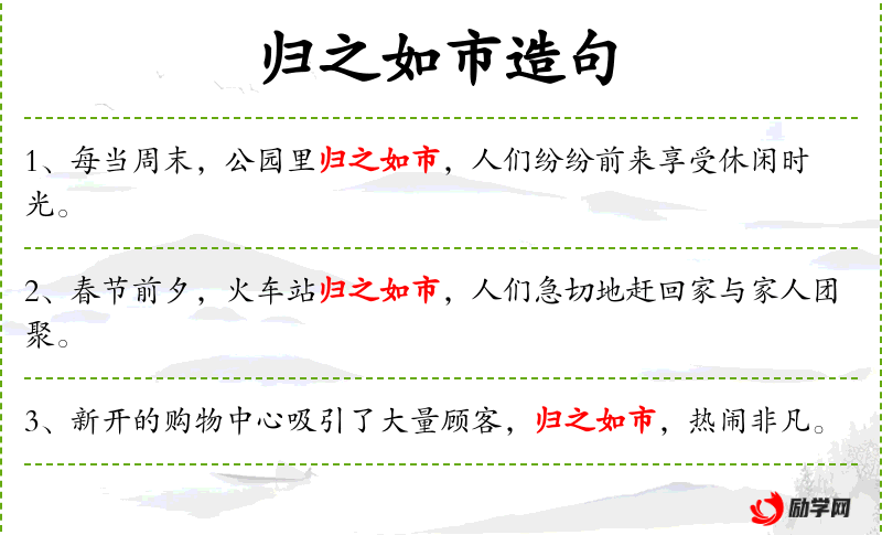 - 相关成语:归之如市(形容人们聚集的盛况)