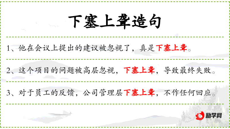 1. 【下塞上聋】 - 塞:堵塞不通。聋:耳朵的听觉失灵。下边堵塞不通,上边听觉失灵。比喻真实情况不能上传下达。
