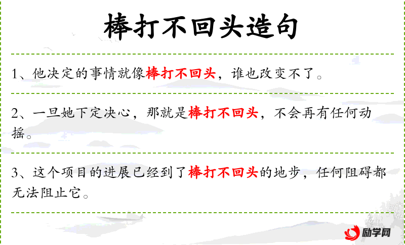 3. 【棒打不回头】 - 比喻认定主意,在强大压力面前也不动摇。