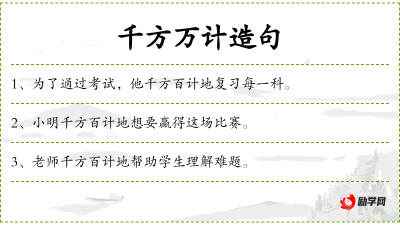 句子:“[老师千方百计地帮助学生理解难题。]”