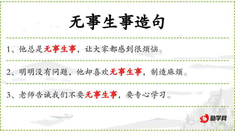 - 宾语:“无事生事,制造麻烦”