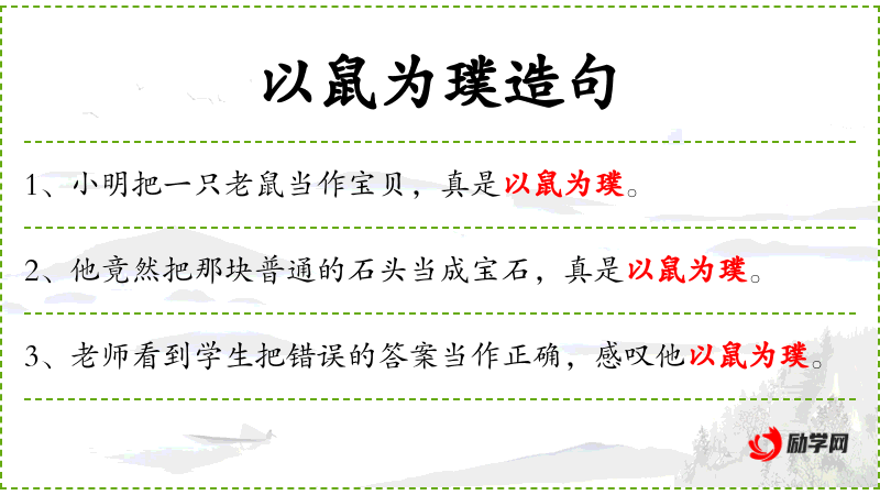 - 以鼠为璞:这个成语源自古代,比喻把不值钱的东西当作宝贝。在文化中,这种表达常用于批评某人的无知或错误的价值观。