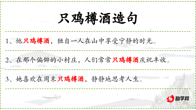 句子:“她喜欢在周末只鸡樽酒,静静地思考人生。”