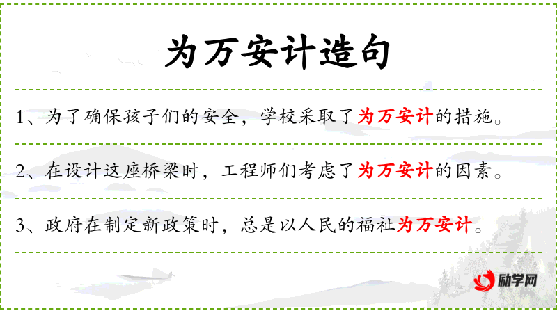 1. 【为万安计】 为绝对安全着想。