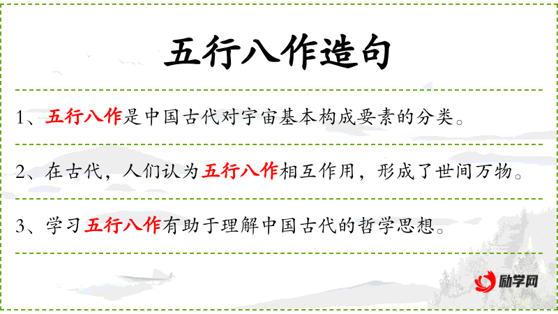 - 了解五行理论和八作的具体内容有助于更深入地理解句子的含义和背景。