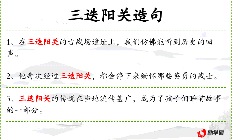 1. 【三迭阳关】 三迭:反复歌唱某一句;阳关:古关名,在今甘肃敦煌县西南。原指古代送别的曲调。后也比喻离别。