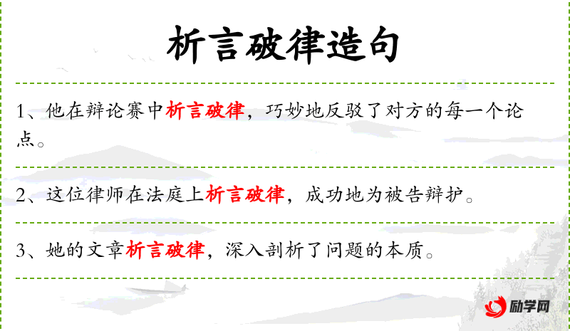 1. 【析言破律】 指巧说诡辨,曲解律令。