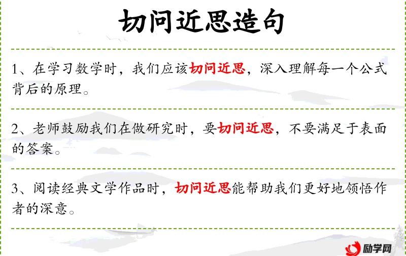句子:“在解决数学难题时,切问近思是找到正确答案的关键。”