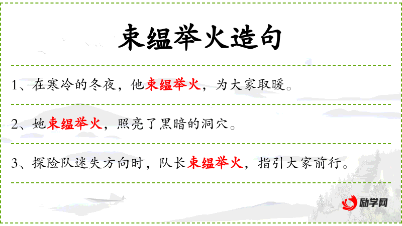 探险队迷失方向时,队长束缊举火,指引大家前行。