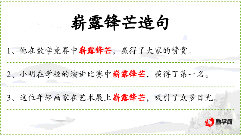 - 崭露锋芒:比喻初露头角,显示出才华或能力。