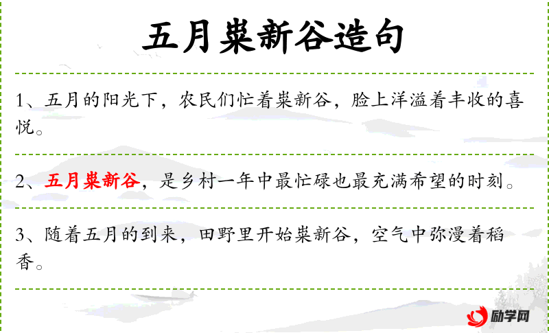- “在乡村,五月出售新谷是一年中最繁忙且最令人期待的时刻。”