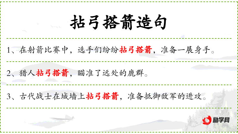 - 拈弓搭箭:指准备射箭的动作,拈弓是拉开弓,搭箭是将箭放在弓上。