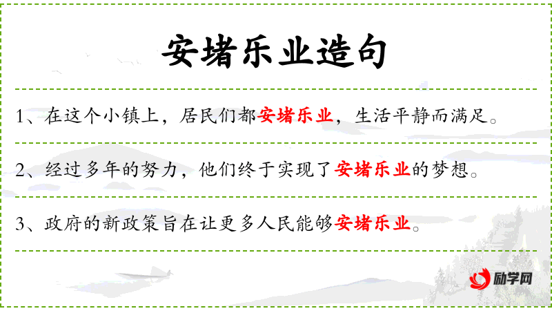 - 文化背景:在**文化中,安居乐业是一个重要的生活目标,强调稳定和满足。