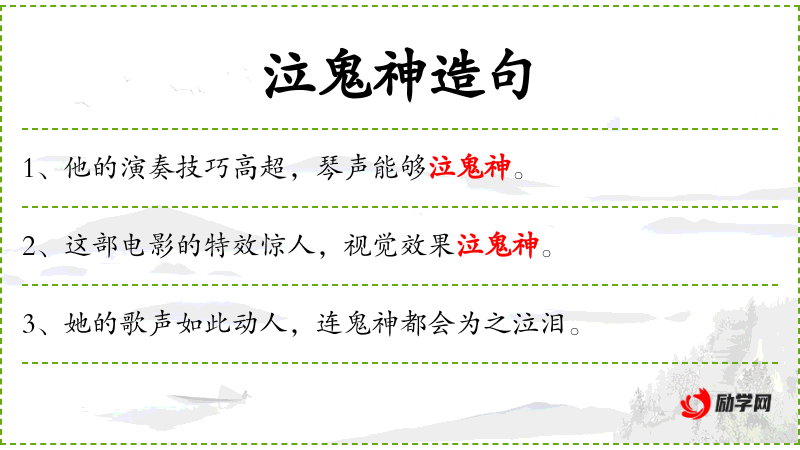 2. 【泣鬼神】 - 使鬼神为之哭泣。比喻诗文感人至深。