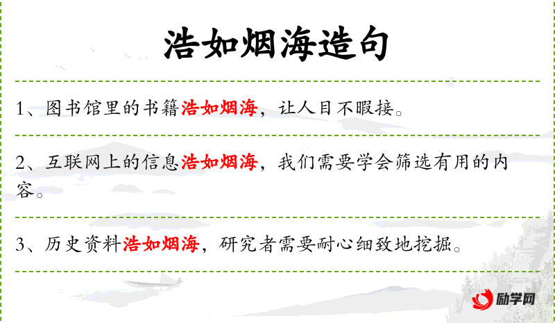 5. 【浩如烟海】 浩:广大;烟海:茫茫大海。形容典籍、图书等极为丰富。