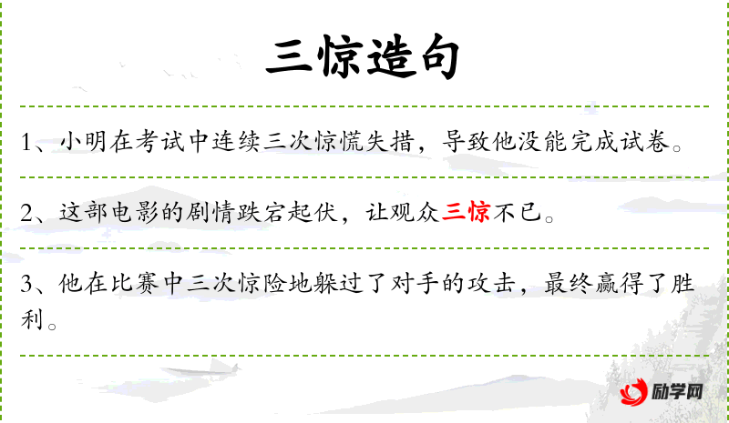 1. 【三惊】 - 古代用兵,三度耀威示武使敌惊惧,谓之"三惊"。
