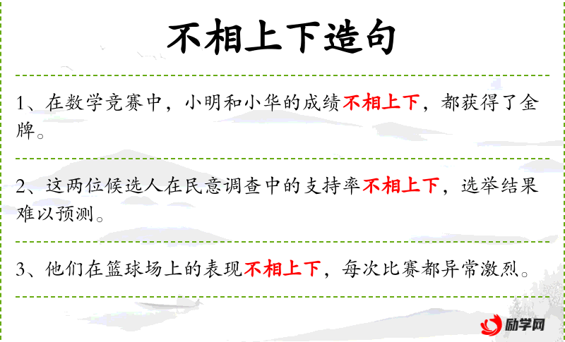 1. 【不相上下】 - 分不出高低好坏。形容水平相当。