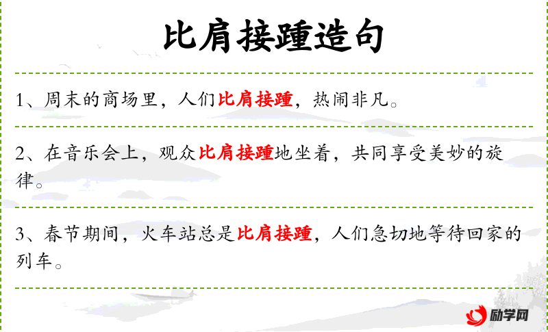4. 【比肩接踵】 - 犹比肩继踵。形容人很多或接连不断。
