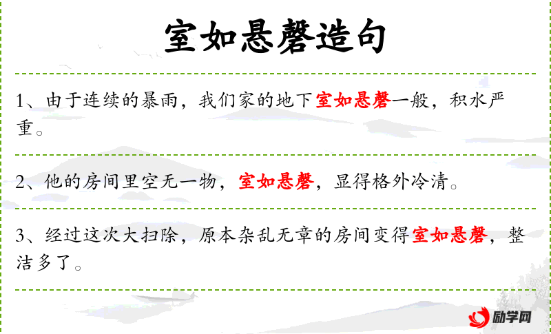- 如悬磬:比喻用法,形容非常安静或空旷。