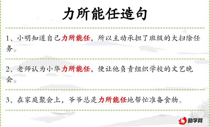 - 力所能任:成语,意思是能力足以胜任某项工作。