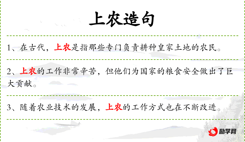 1. 【上农】 亦称"上农夫"。古代指种植条件较好﹑收益较多的农民; 重农。上,通"尚"。