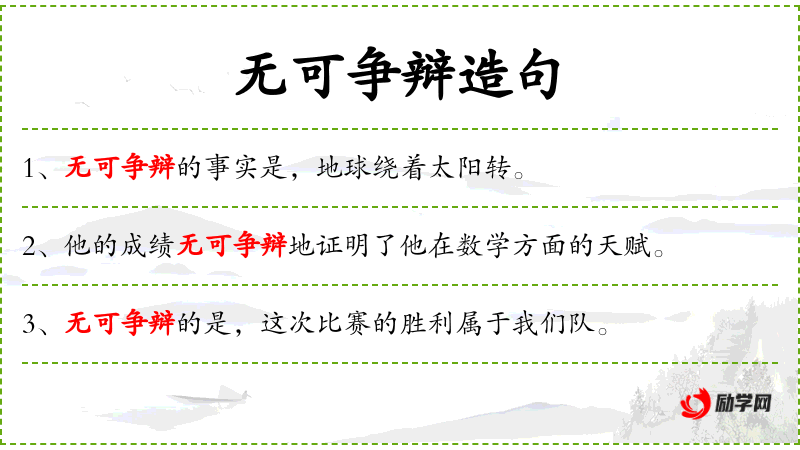 - 无可争辩的:表示毫无疑问,不容置疑。