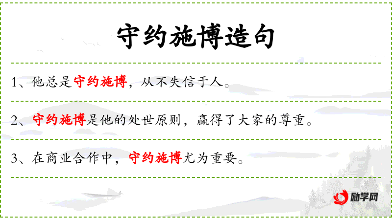主句:“守约施博是他的处世原则”