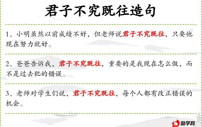 - 君子不究既往:这个成语源自**传统文化,强调宽容和前瞻性,不纠结于过去的错误,而是鼓励人们向前看,努力改进。