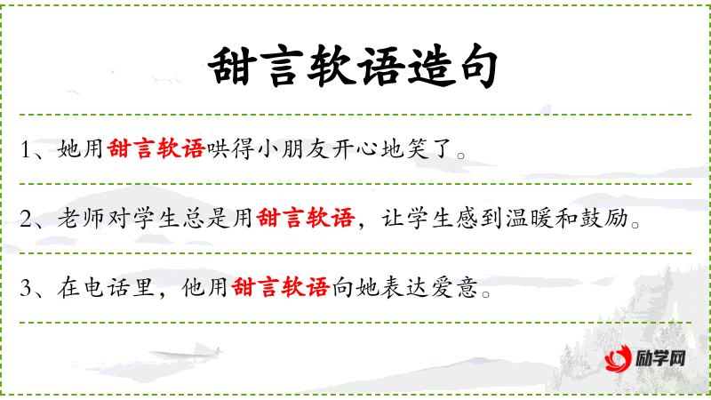 1. 【甜言软语】 - 甜蜜温柔的话。
