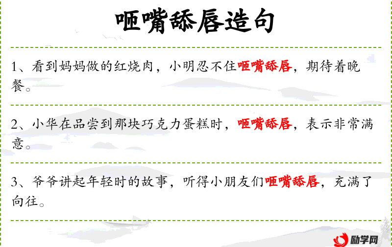 - 或者:“那块巧克力蛋糕让小华咂嘴舔唇,显然他非常喜欢。”