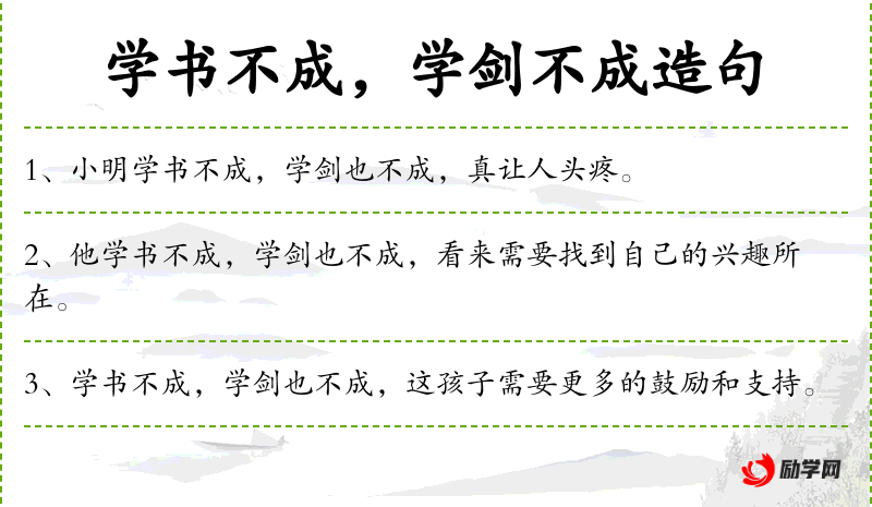 句子:“学书不成,学剑也不成,这表明他需要更多的实践和经验。”