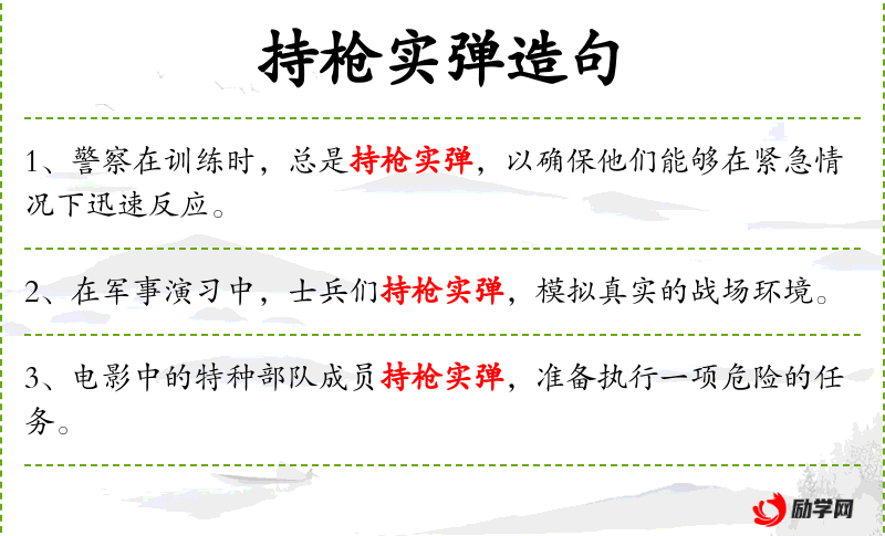 - 持枪实弹:指士兵手持装有实弹的枪支。