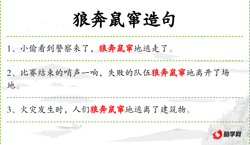 2. 【狼奔鼠窜】 - 狼群鼠辈到处流窜。形容人四处奔跑逃窜。